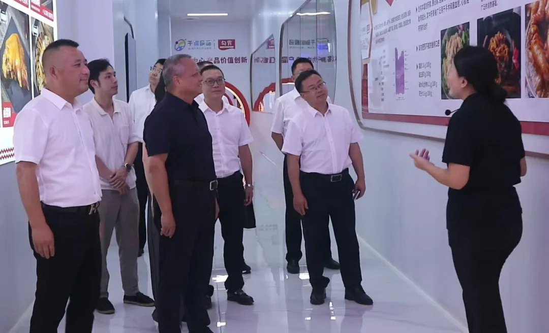 2025年8月14日,合川區委副書記、區長陳橋率領區政府相關部門負責人一行蒞臨重慶千瑞食品非遺勾胃鹵肥腸數字化生產車間開展調研,公司董事長王明及相關負責人全程陪同。